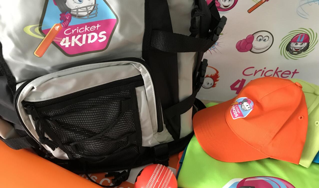 Wat zit er in een Cricket4KIDS pakket: Een rugzak, 1 bat, 1 bal, een Cricket4KIDS T-shirt, een pet, een wicket sticker, een stickervel en een scoreformulier voor de 8 evenementen.